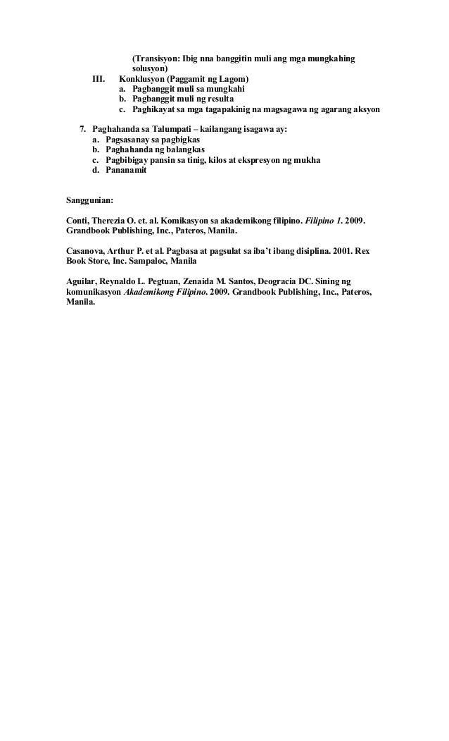 Ito ay may layuning malinang ang isa sa mga anyo ng sulating akademiko na magagamit sa wastong paglalahad ng mga kaisipan. Pagsulat ng Talumpati at Paraan ng PagtatalumpatiInihanda nina. Ang isang talumpating isinulat ay hindi magiging ganap na talumpati kung ito ay hindi mabibigkas sa.