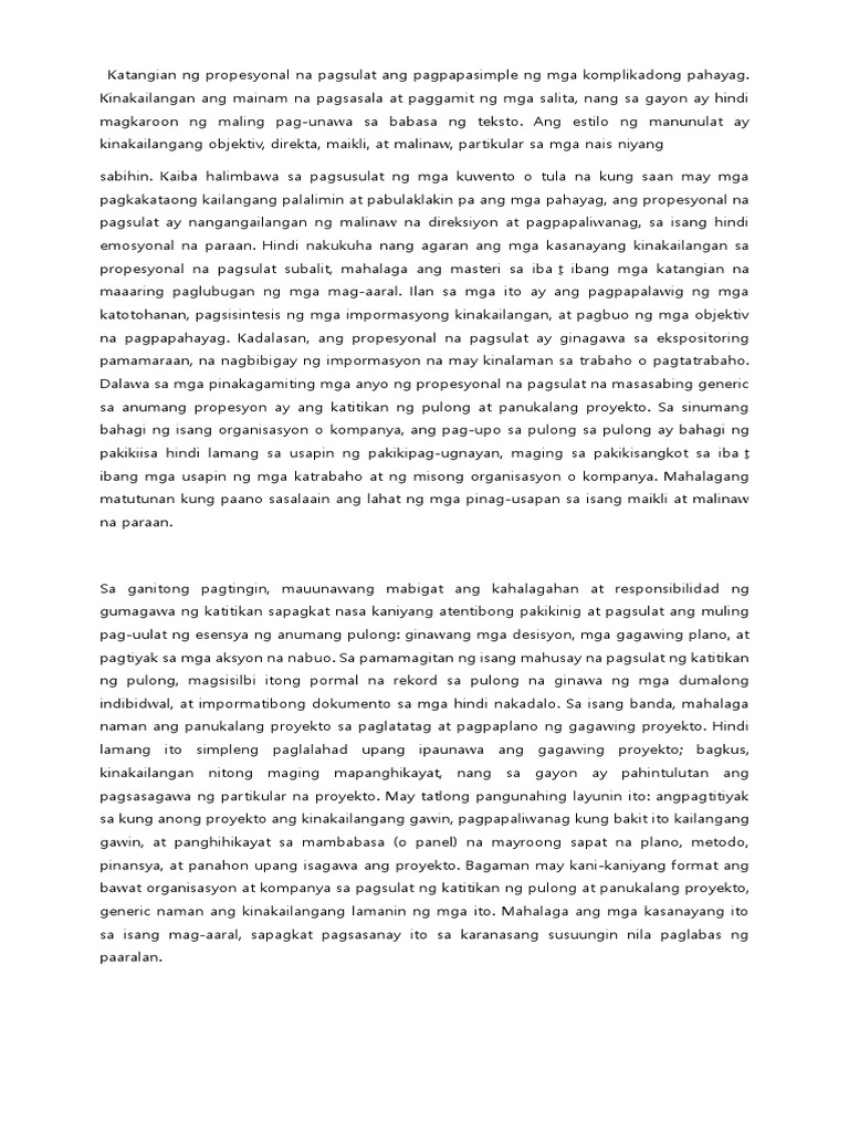 Katangian Ng Propesyonal Na Pagsulat Ang Pagpapasimple Ng Mga Komplikadong Pahayag Pdf