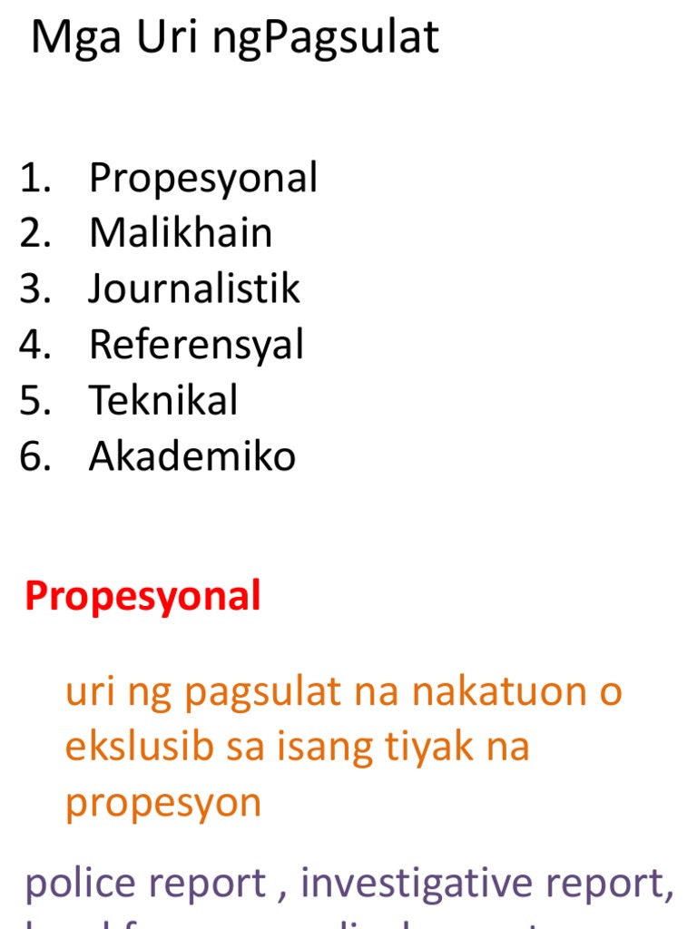 Akademik Ito ay maaaring maging kritikal na sanaysay lab report eksperimento konseptong papel term paper o pamanahong papel thesis o disertasyon. Maiharap ang impormasyong batay sa katotohanan o kayay makabuo ng kongklusyong batay sa katotohanang ito. Ang anyo ng impormasyon ay.