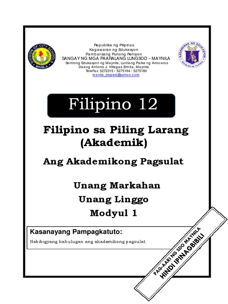 Filipino 12 Q1 Mod1 Akademik Pdf Pdf