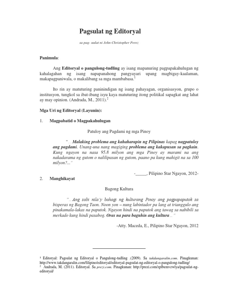 Pagsulat Ng Editoryal At Akademikong Jornal Pdf